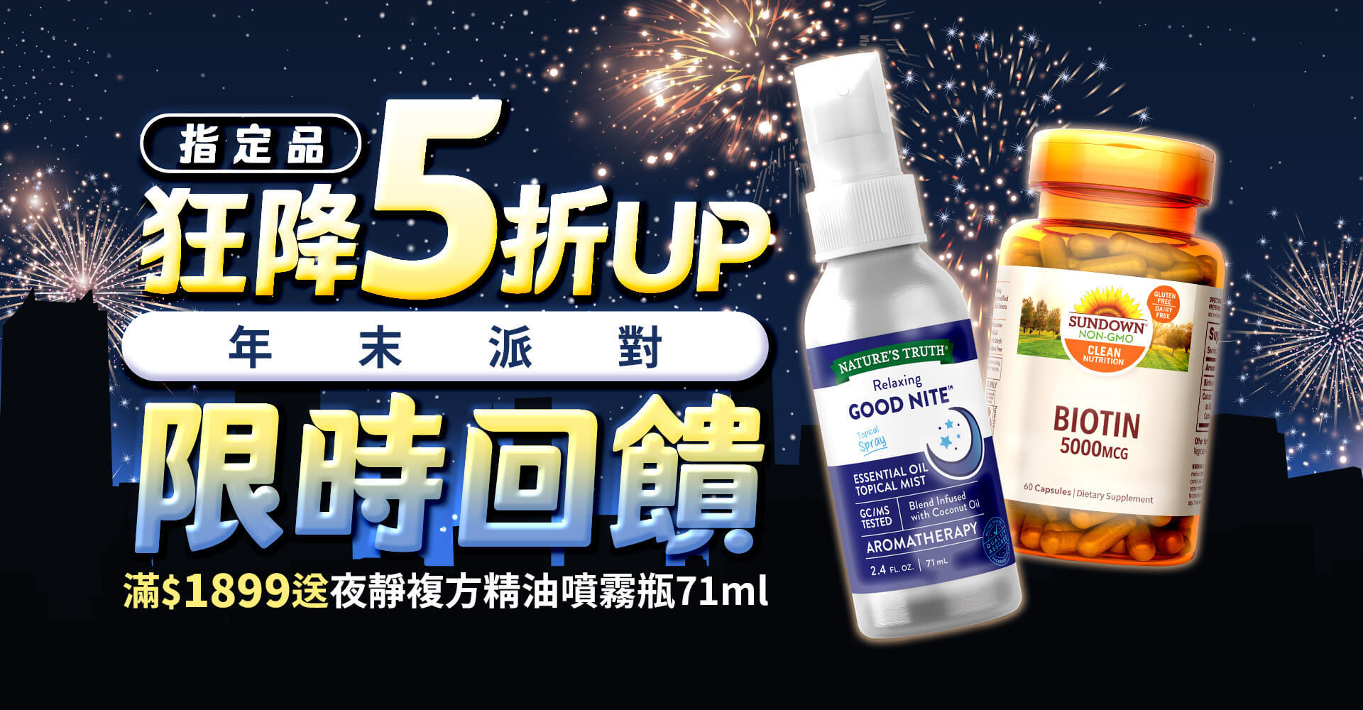 【即期品】Sundown日落恩賜 生物素5000mcg+鈣膠囊(60粒/瓶)_效期至2026/2/28