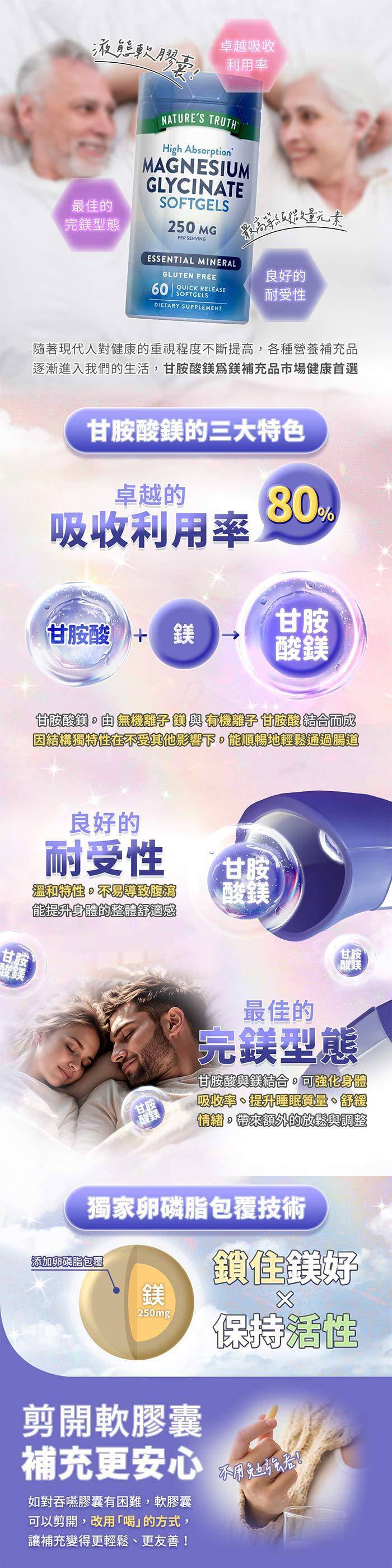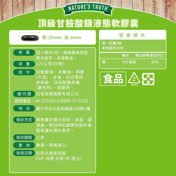 綠萃淨 頂級甘胺酸鎂液態軟膠囊(60粒/瓶)