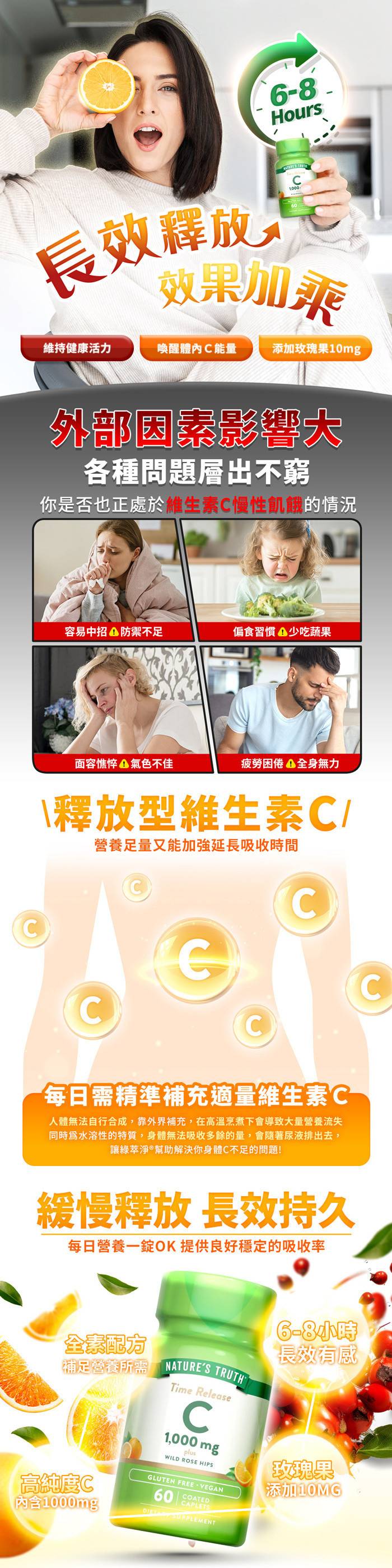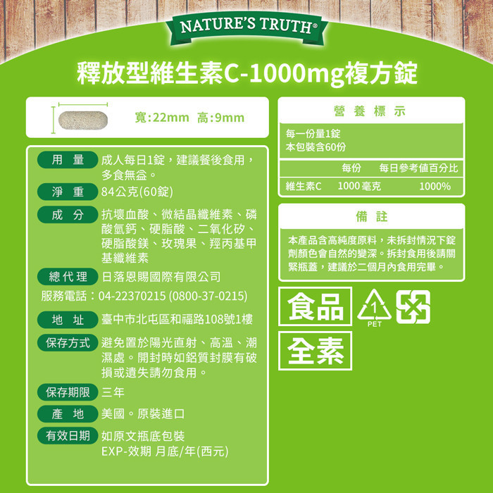 商品詳情 ★高純度維生素C ★長效釋放6-8小時 ★含複方玫瑰果,富含多種營養 ★多種優質好處,調整身體功能 綠萃淨 釋放型維生素C-1000mg複方錠(60錠/瓶) TWD $690 TWD$ 690