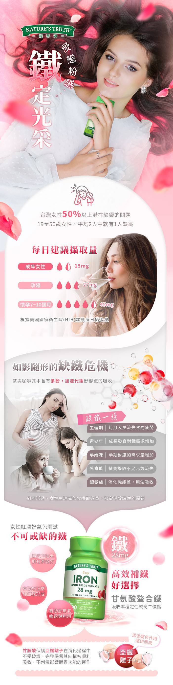 商品詳情 ★美國原裝進口、吸收率高達90% ★專利螯合技術,含鐵元素28毫克 ★對消化道溫合,減少不適等情況 ★有助於正常紅血球的形成 綠萃淨 甘氨酸螯合鐵28mg膠囊x3瓶組(90粒/瓶) TWD $1,290 TWD$ 1,290