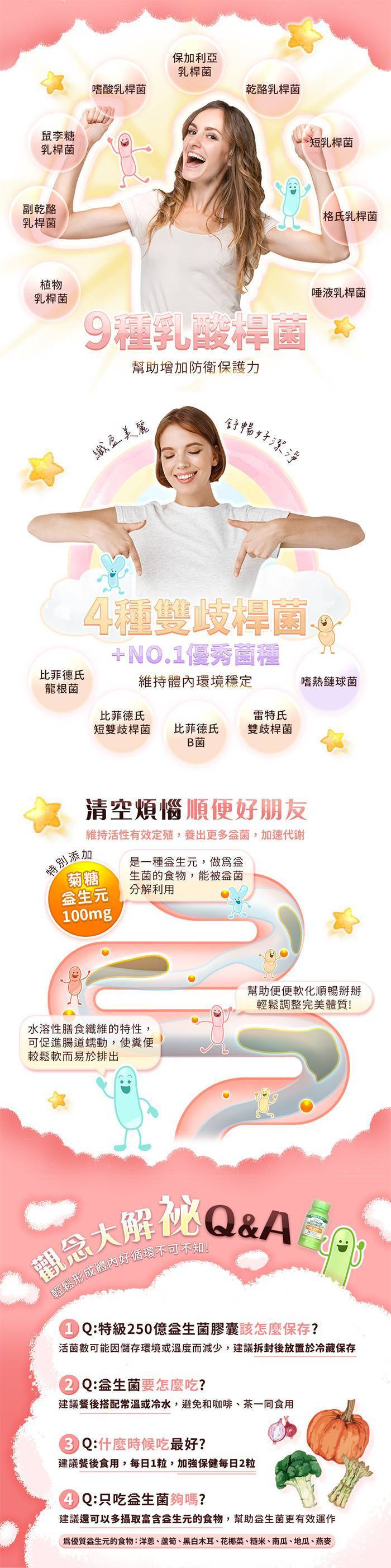 商品詳情 ★高達250億的活性益生菌 ★嚴選14種國際優勢菌種 ★益生菌(Probiotic)+菊糖益生元(Prebiotic) ★由內而外窈窕順暢,增加自信美 ★不含人工香味、人工色素 綠萃淨 特級250億14株益生菌膠囊x3瓶組(60粒/瓶) TWD $3,490 TWD$ 3,490