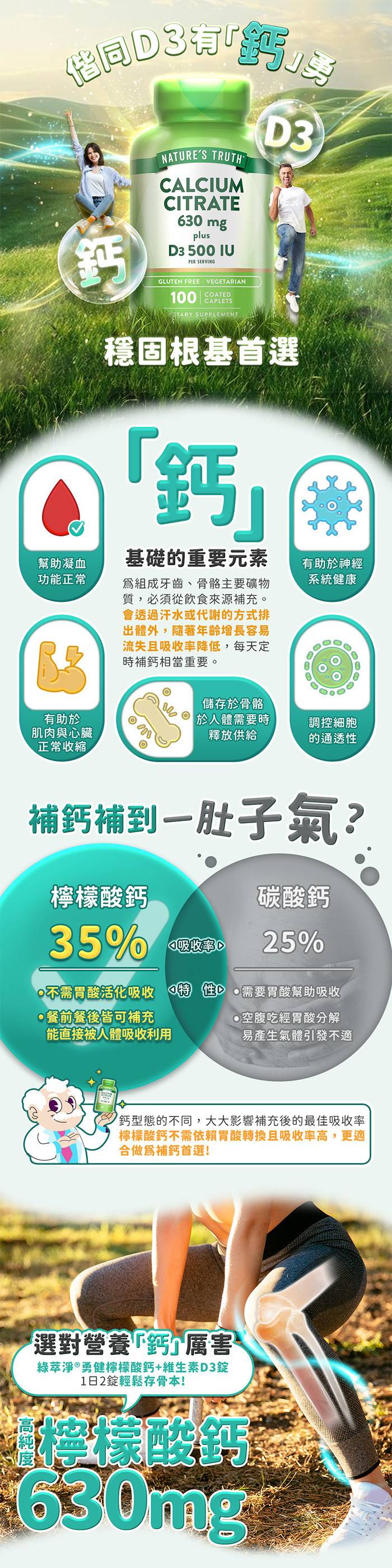 綠萃淨 勇健檸檬酸鈣+維生素D3錠(100錠/瓶)