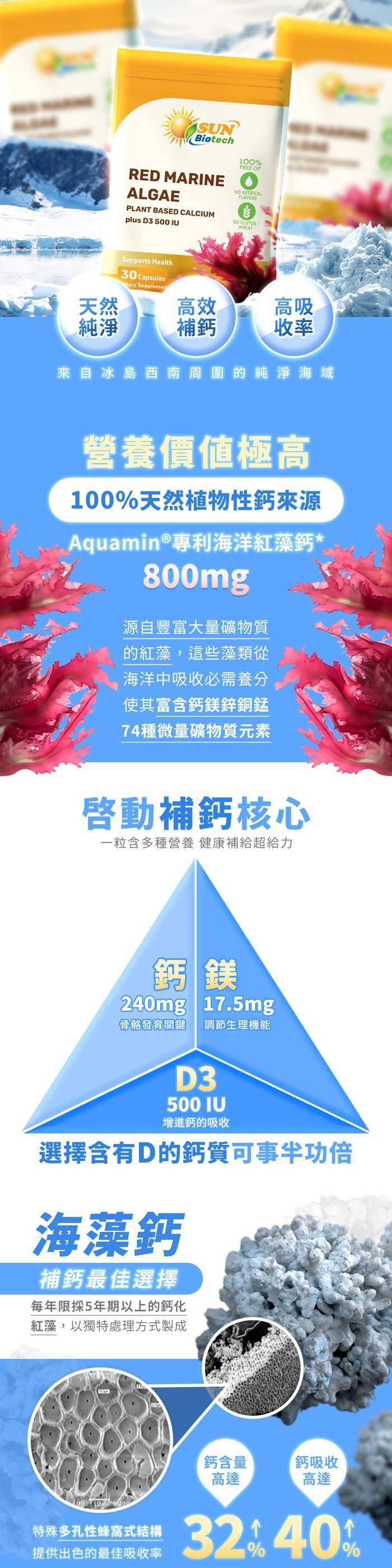 商品詳情 ★天然海藻鈣 非合成 ★黃金鈣鎂配方 ★74種微量礦物質元素 ★非活性D3 500IU 增進鈣吸收 ★檢驗合格、國際品牌有保障 Sun日落恩賜 愛爾蘭海藻鈣+D3複方膠囊(30粒/袋) TWD $490 TWD $490
